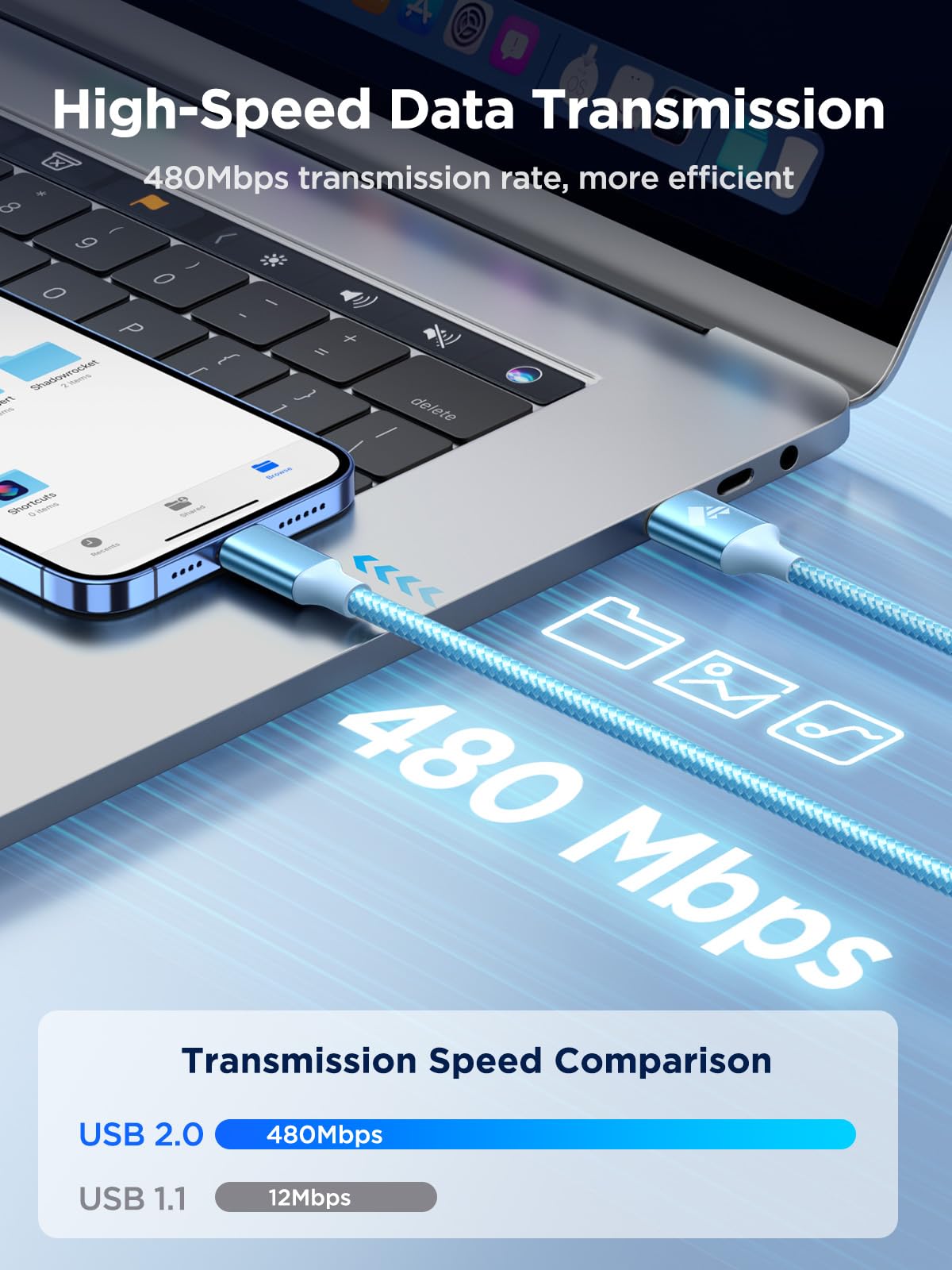 iPhone Charger Cable 2M, MFi Certified Lightning Cable Fast Charging iPhone Charger Nylon USB iphone Charging Cable Lead for iPhone 14 13 12 11 Pro Max XS XR X 8 7 6 Plus 5 SE,iPad